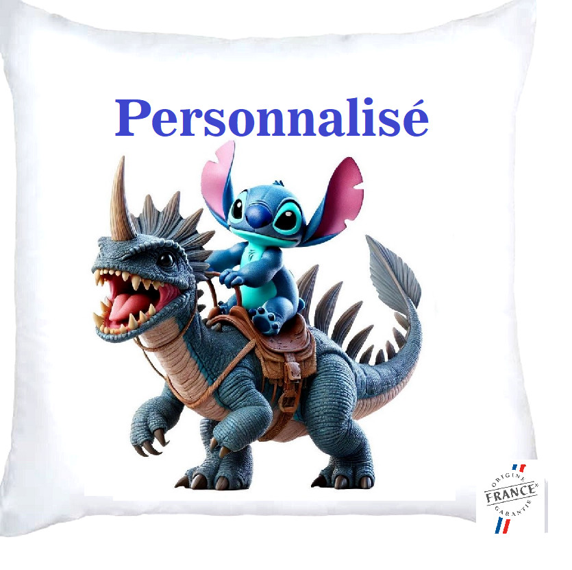 Housse de Coussin Stitch Dinosaure. Personnalisé avec le prénom de votre enfant.