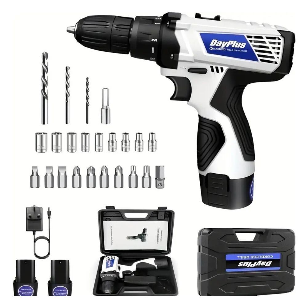 Perceuse Visseuse Sans Fil 16.8V Avec 26 Accessoires 2 Vitesses LED Compacte