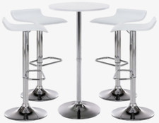 Table De Bar Avec Deux Chaises Hautes Dossier Et Repose Pieds Style Industriel. Lestabourets de bar avec dossier ergonomique assurent un excellent maintien du dos et un confort prolongé. Compact et élégant, cet ensemble s’intègre aussi bien dans une cuisine ouverte, une loggia ou un petit salon.