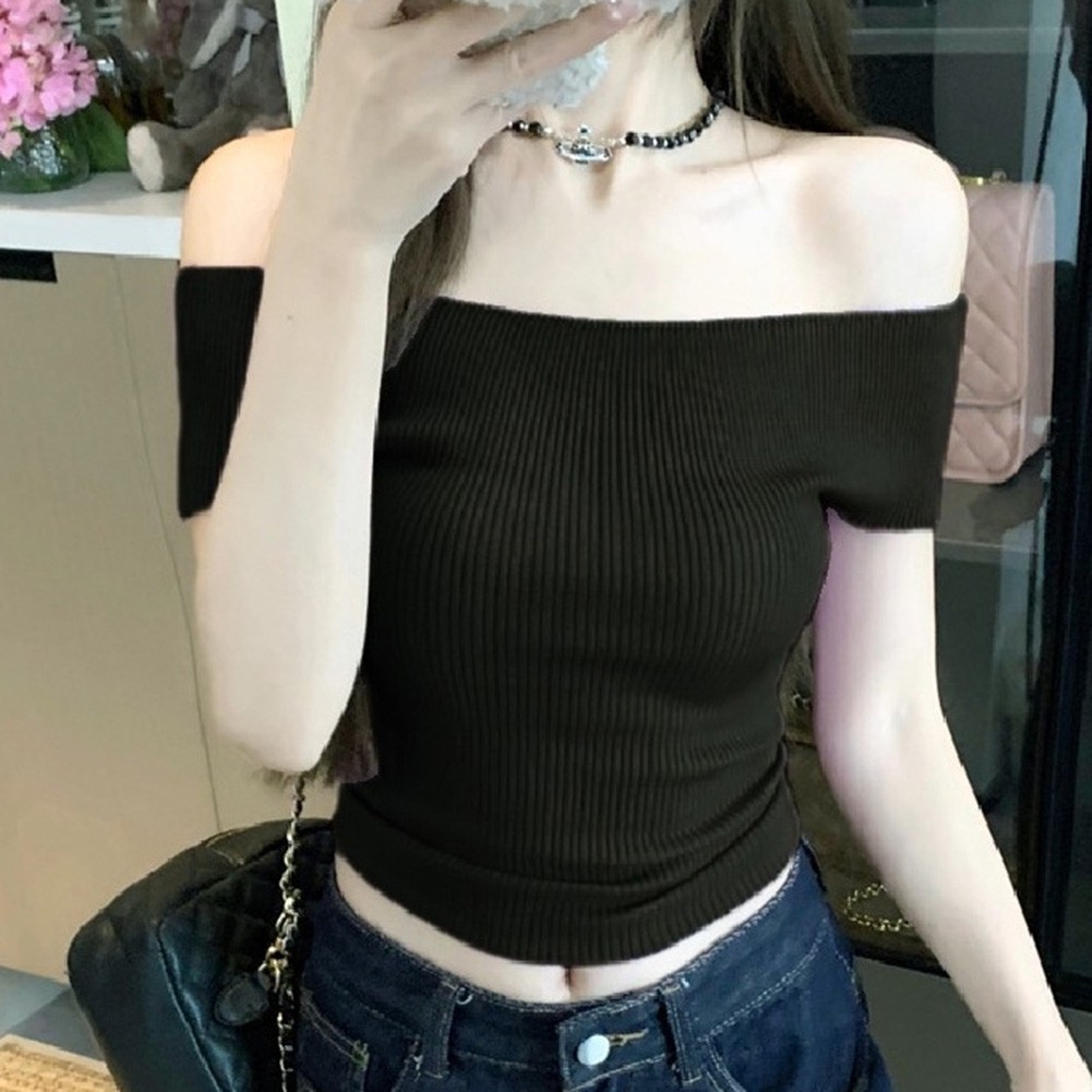 T-shirt femme chic été épaules dénudées à manches courtes style décontrac