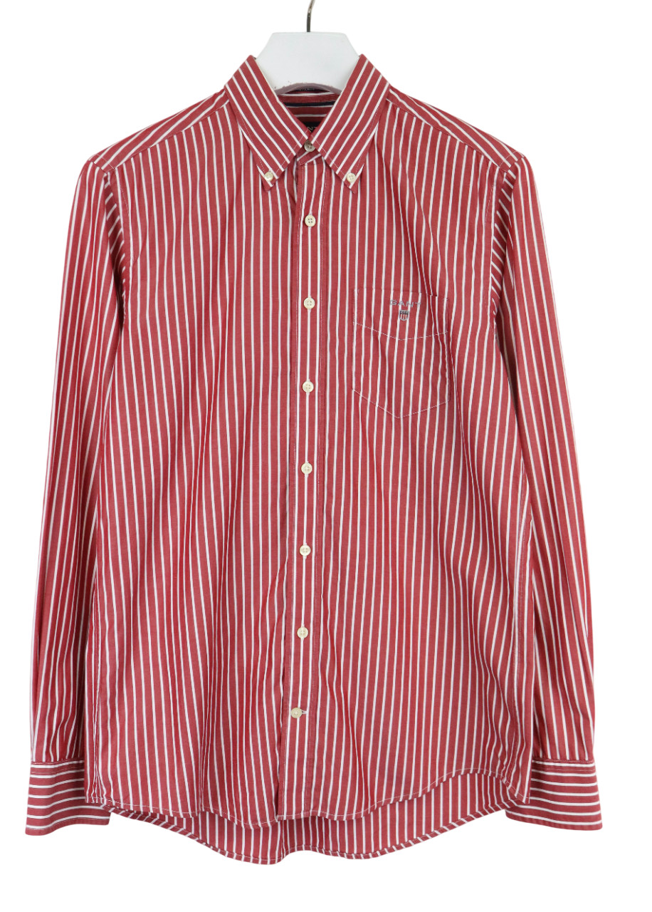 Gant The Breton Regular Fit Chemise Homme M Col Bouton à Fine Rayure Rouge