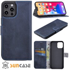 Suncase® Étui En Cuir Pliable Couverture Livre Pebble Bleu Pour IPhone 13 Pro