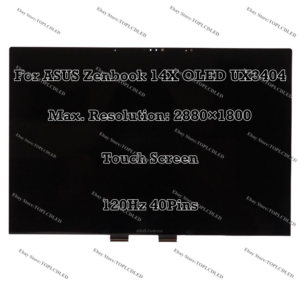 14.5" For ASUS Zenbook 14X OLED UX3404 2.8K 2880×1800 120Hz LCD Display Complete Assembly Touch Screen Replacement Panel VERY IMPORTANT! PLEASE READ BEFORE YOU BUY!!! • Only works on Max.Resolution 2880×1800 OLED! If you have an UHD or LED version please do not purchase this item • Item Condition: Brand New • Size: 14.5" • Compatible Model: For ASUS Zenbook 14X OLED UX3404 • Resolution: 2880×1800 OLED .