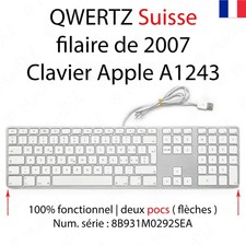 Clavier Apple modèle A1243 avecconnexion filaire USB, pavé numérique ettouches de fonction additionnelles. Connexion : USB filaire (Type A). Notez que le clavier peut aussi fonctionner sur PC sous Windows avec quelques limitations et un pilote non fourni.