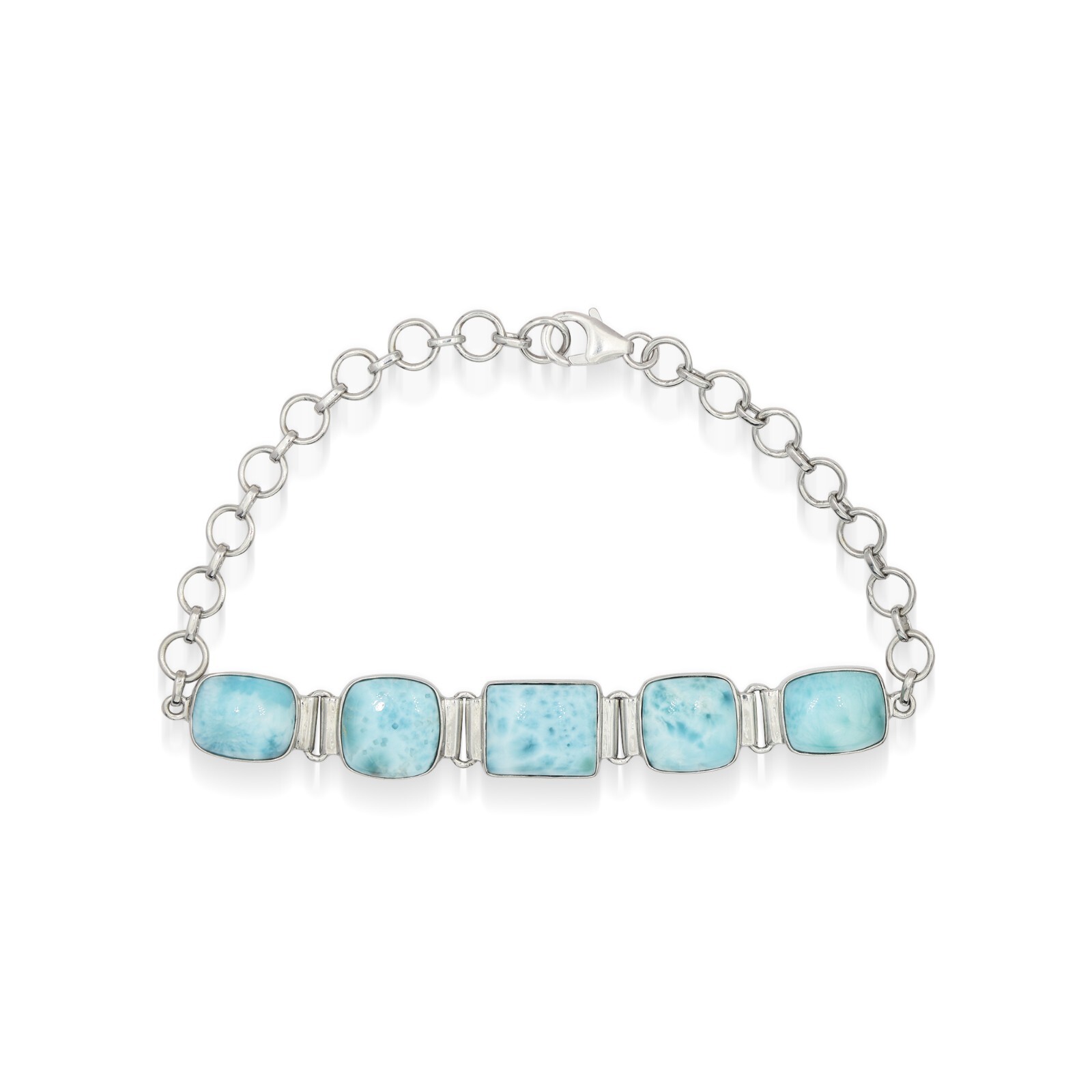 Bijoux bracelet rectangulaire carré pierre précieuse naturelle Larimar en arg...