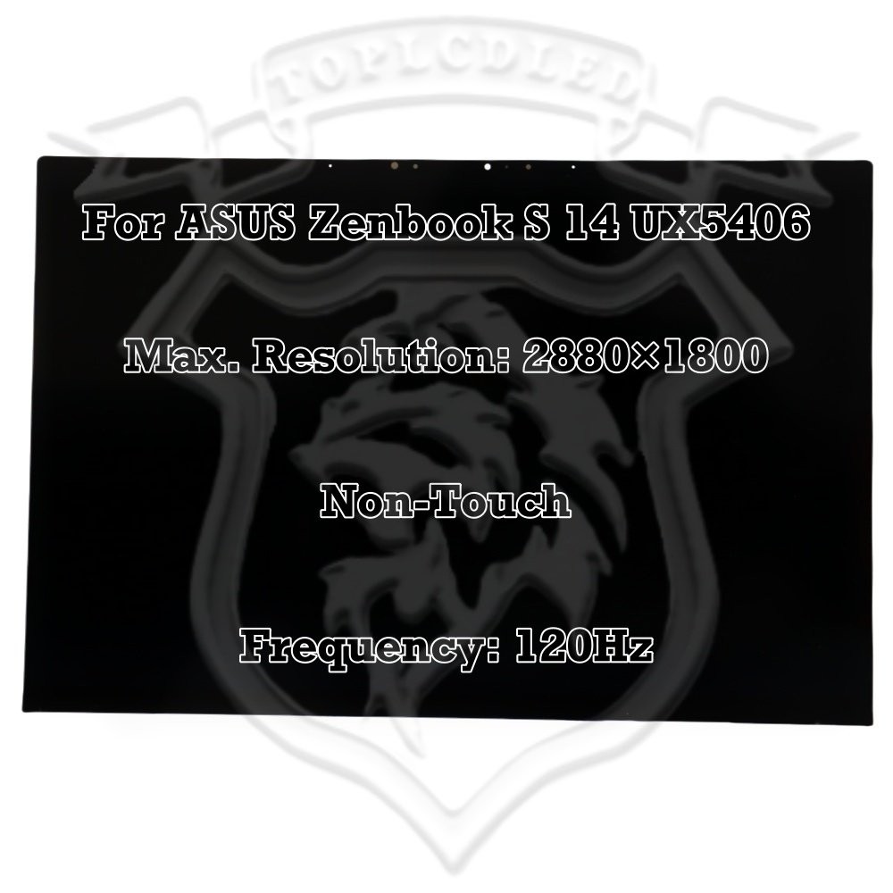 14" For ASUS Zenbook S14 UX5406 OLED 2.8K 2880×1800 16:10 120Hz 100% DCI-P3 LCD Display Complete Assembly Screen Replacement Panel VERY IMPORTANT! PLEASE READ BEFORE YOU BUY!!! • Only works on Max.Resolution 2880×1800 OLED! If you have an FHD or LED version please do not purchase this item • Item Condition: Brand New • Size: 14" • Compatible Model: For ASUS Zenbook S14 UX5406 • Resolution: 2880×1800 OLED .