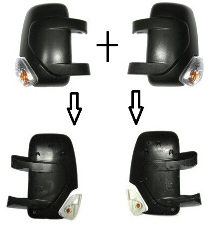 Nissan Interstar 2010-. 2xCOQUE DE RETROVISEUR EXTERIEURE. Pour Retroviseur avec court bras. + AVEC CLIGNOTANT. côté: Gauche + Droite. Renault Master 2010-. Opel Movano 2010-.