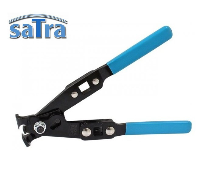 Pince pour colliers à oreille / clip en O, adaptée aux colliers de type oreille trouvés sur les soufflet d'arbres de transmission homocinétique. Longueur totale de la pince 250 mm.