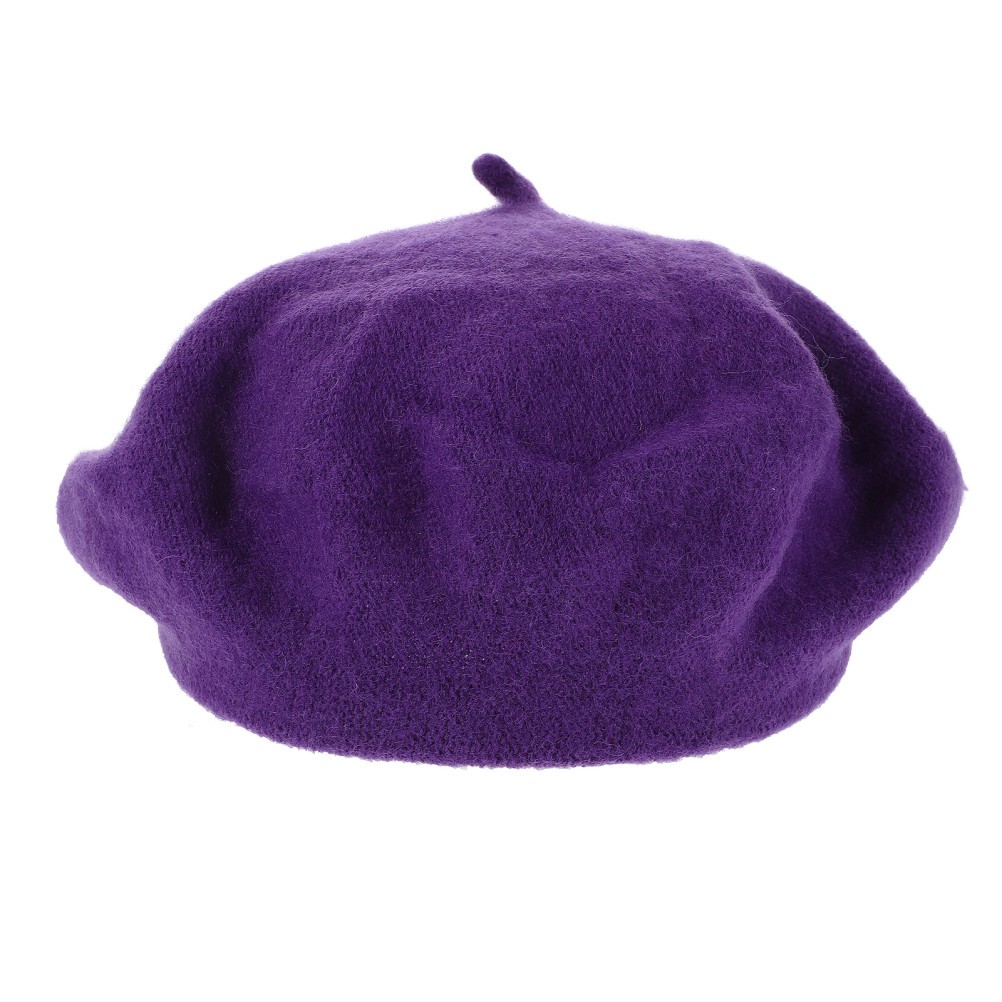 Béret en laine : bonnet en laine de style français 56-58 cm, couleur unie, pour