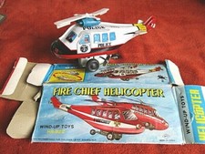 Hélicoptère mécanique à clé avec sa boîte origine Jouet ancien L : 20 cm - TBE.