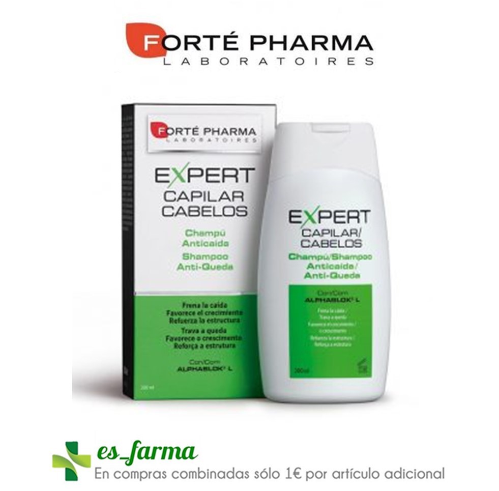 FORTE PHARMA EXPERT SHAMPOOING PERTE DE CHEVEUX CAPILLAIRE 120ML SHAMPOOING PERTE DE CHEVEUX SHAMPOOING Forté Pharma propose un shampooing anti-chute qui agit pour réduire la chute del cheveu, favoriser sa pousse et renforcer sa structure. Le shampooing est appliqué sur cheveux mouillés et massé doucement, en rinçant et en répétant l'opération. Pour protéger vos cheveux, il est préférable que l'eau ne soit pas trop chaude, peignez-les avec un peigne à dents larges et laissez-les sécher à l' aire Les extraits végétaux du shampooing expert capillaire contiennent des inhibiteurs du 5-α (Serenoa serrulata Prunus africana y) qui ralentissent la chute et augmentent la densité del cheveu, et un extrait de Gingko Biloba favorise la microcirculation. La vitamine B5 participe à la régénération d.
