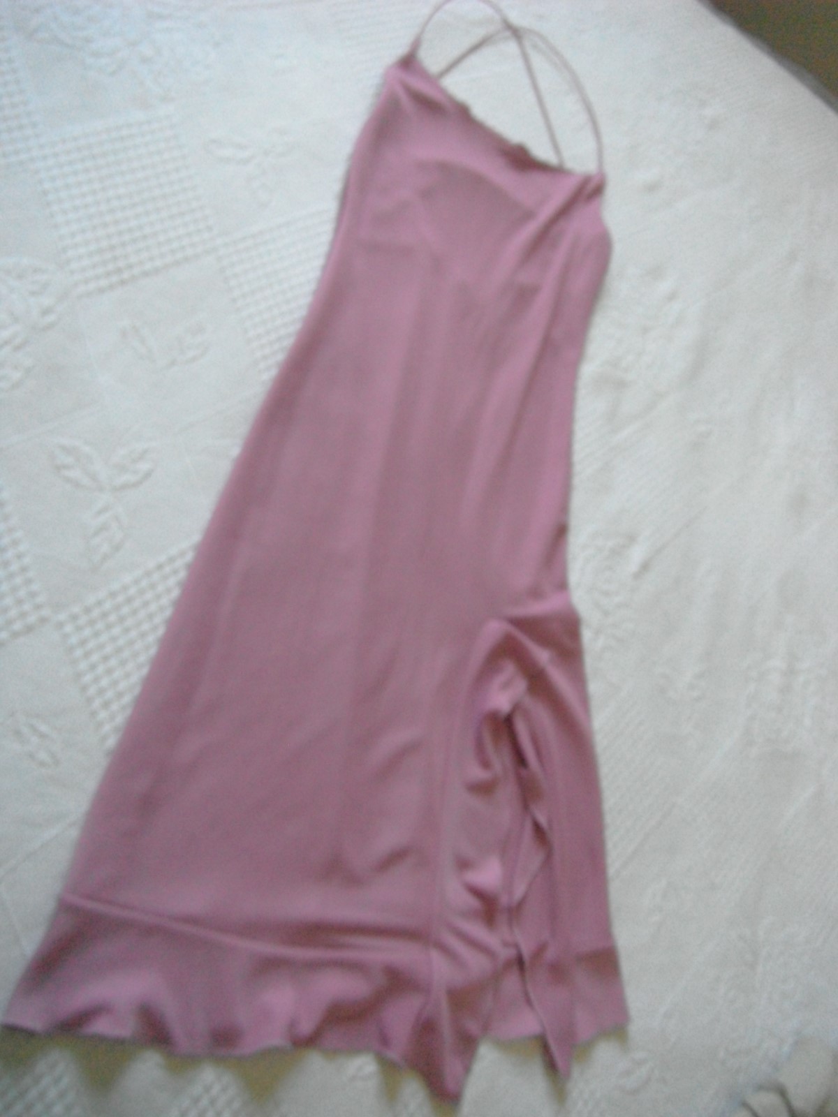 ROBE MI LONGUE DE SOIREE A VOLANTS/BRETELLE ROSE FENTE COTE ELODIE MIAMI