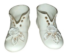 Up for Sale is this Pair of Nantucker porcelain Shoes. Label still attached in one of the shoes. Shoes are adorned with a plastic clear ball on top attached with a pink ribbon.