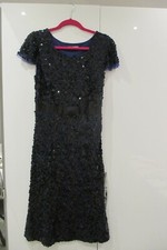 Robe de soirée noire mi-longue, sans manche. Buste tulle orné. Taille 40/42