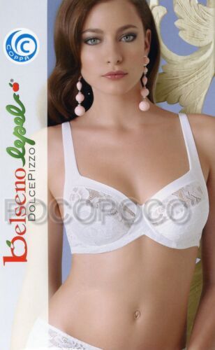 Soutien-gorge en dentelle, pour femme, préformé avec armatures, bonnets non rembourrés, bonnet C et bonnet D, bretelles larges et moelleuses rembourrées doublées de coton sur la peau, dessous de poitrine et dessous de bonnets avec doublure en coton sur la peau, dentelle florale douce et exclusive, crochets fermeture à quatre positions pour un meilleur ajustement, ailes latérales confortables pour un maintien parfait, ligne Belseno Dolce Lace, originale et toute neuve. Couleurs disponibles : noir et blanc. Tailles disponibles : 5 et 7 (bonnet C), 3, 4 et 5 (bonnet D). Composition du produit : 62% polyamide, 30% coton et 8% élasthanne. Marque : « Lepel ». Code : 231. DISPONIBILITÉ LIMITÉE .
