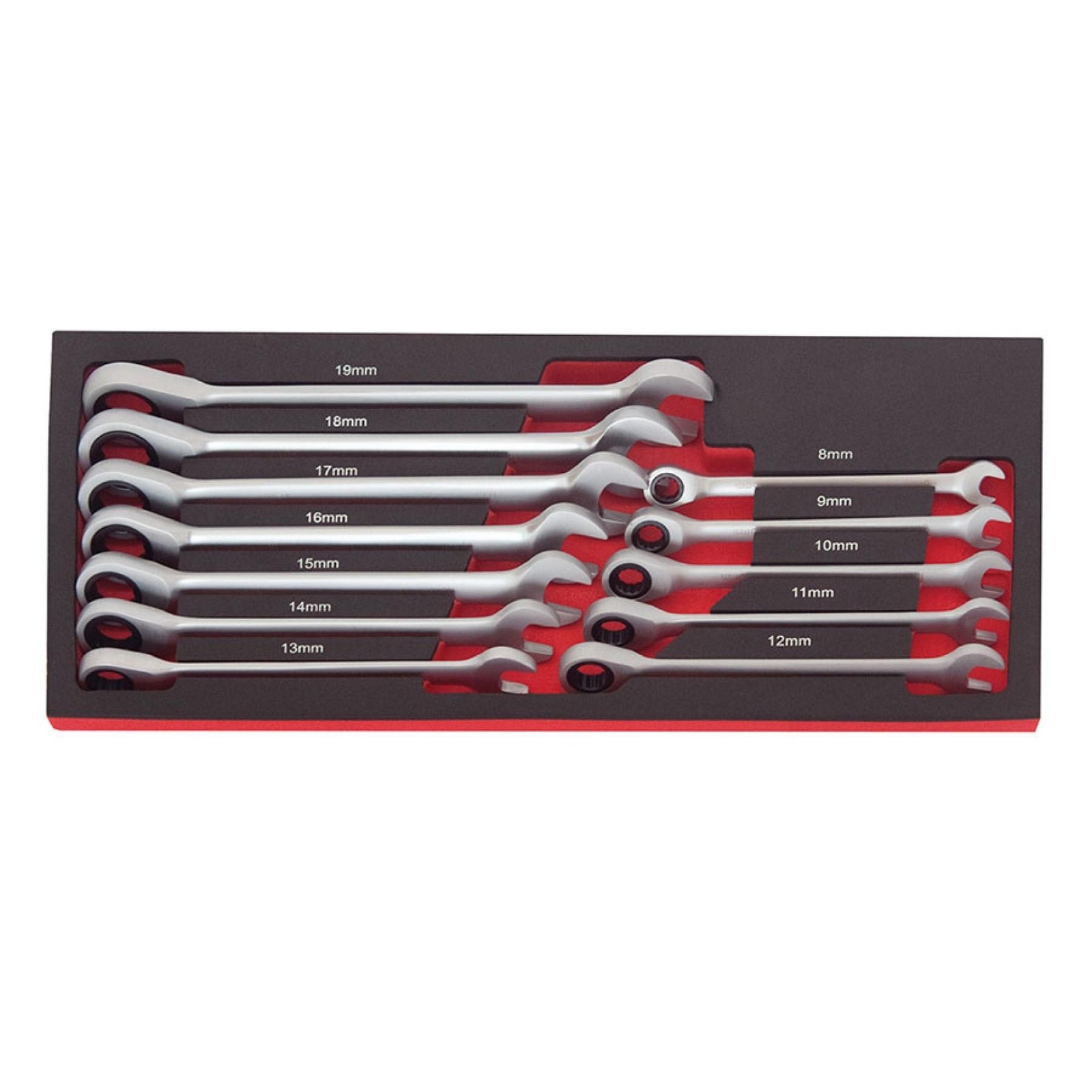 JEU DE 12 CLES MIXTES A CLIQUET DE 8 à 19 mm EN MODULE SERVANTE