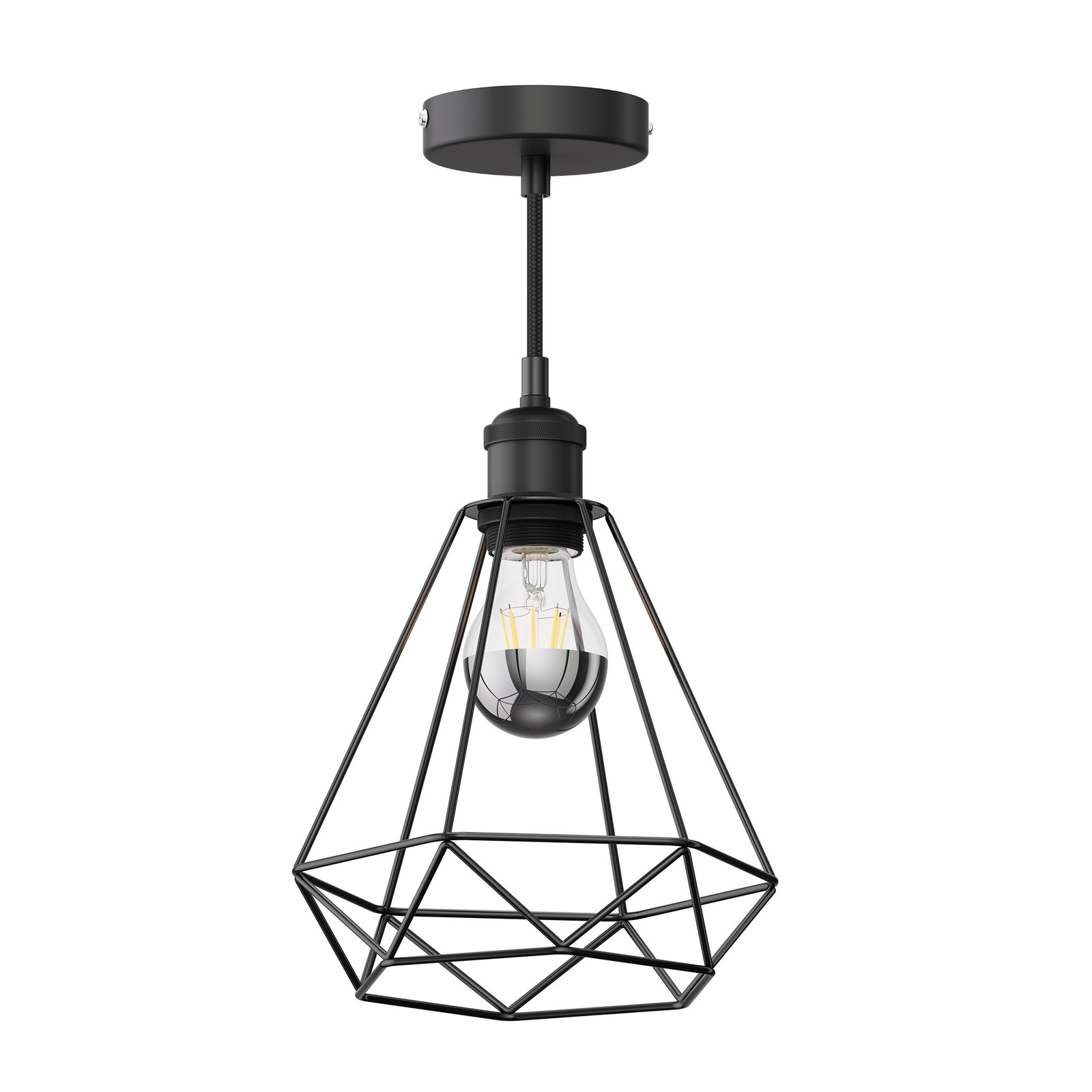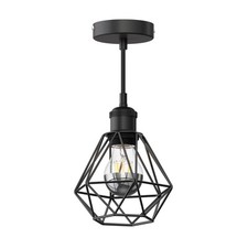 Suspension vintage RETRA noir abat-jour en forme de cage + ampoule LED 667lm