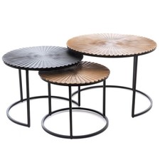 SET DE TableS basseS ronde striée. Tables basses rondes de différentes tailles et couleurs. Cet ensemble de deux tables basses noires est une solution élégante et polyvalente pour le salon. Leur design classique et leur couleur noire intemporelle apportent modernité et style à l'intérieur.