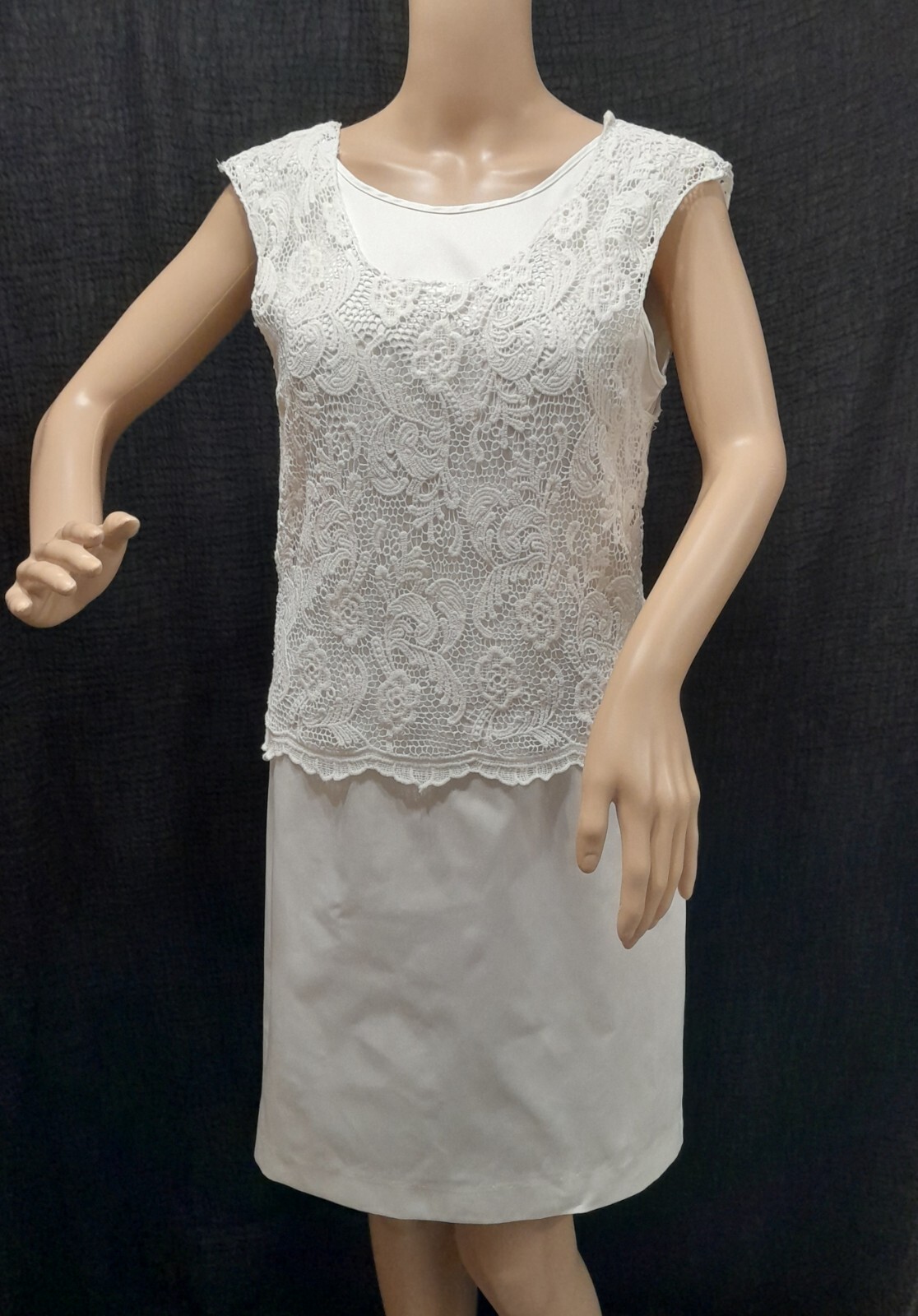 RBF14/ Robe Blanche Dentelle Broderie Ecrue Motif Floral Dos En V Dénudé T38