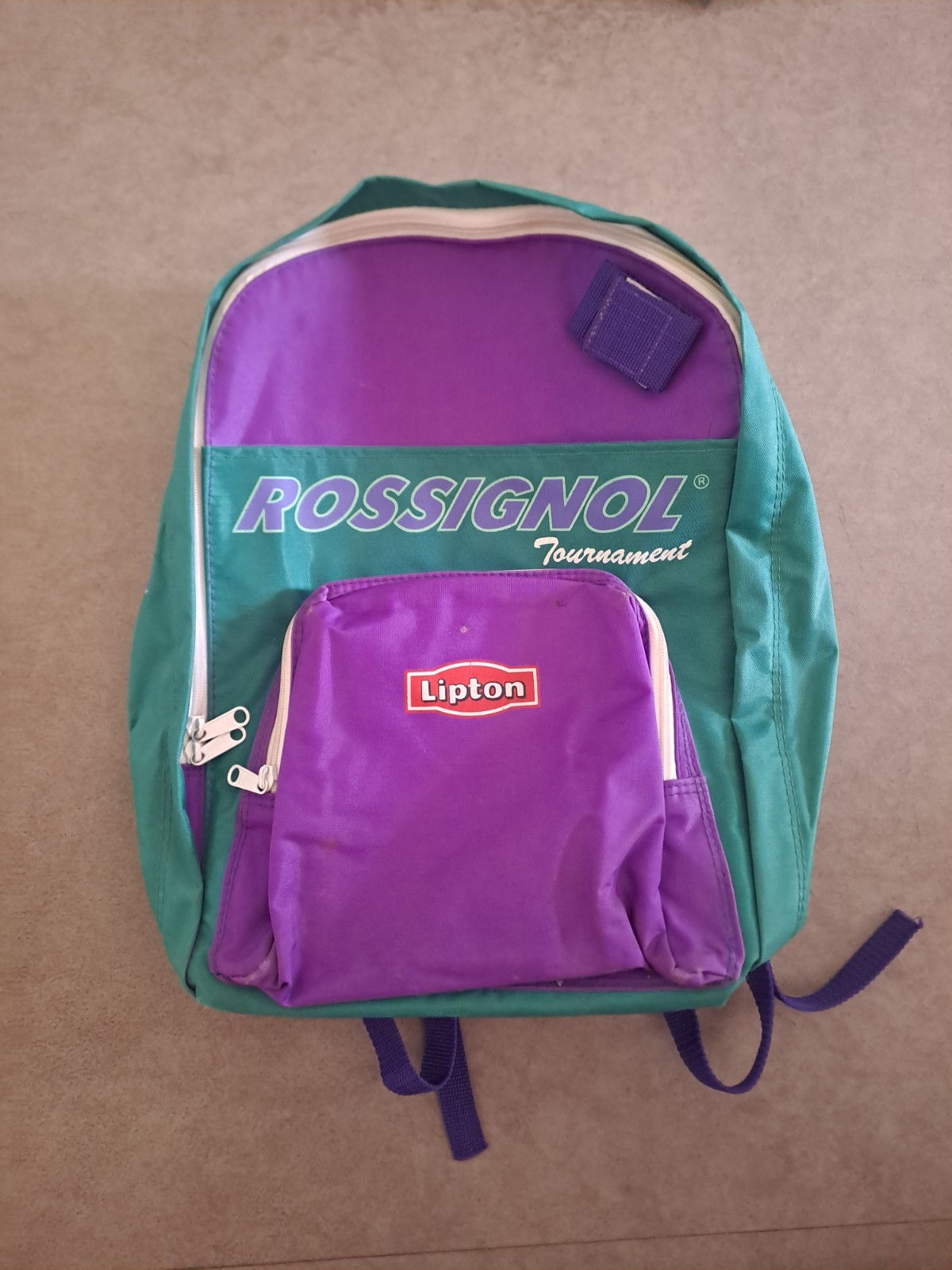 Edition collector publicitaire Lipton. Sac à dos vert et violet Rossignol.