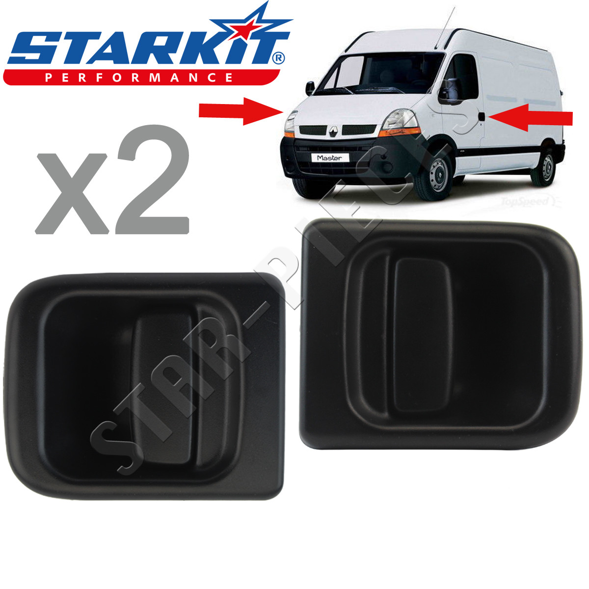 2 poignées de porte extérieures avant gauche et avant droite pour Renault Master, Opel Movano, Nissan Interstar. RENAULT MASTER (1998-2010). Pour RENAULT MASTER 2 de 1998 à 2010. Position :Poignée extérieure, avant gauche et avant droite.