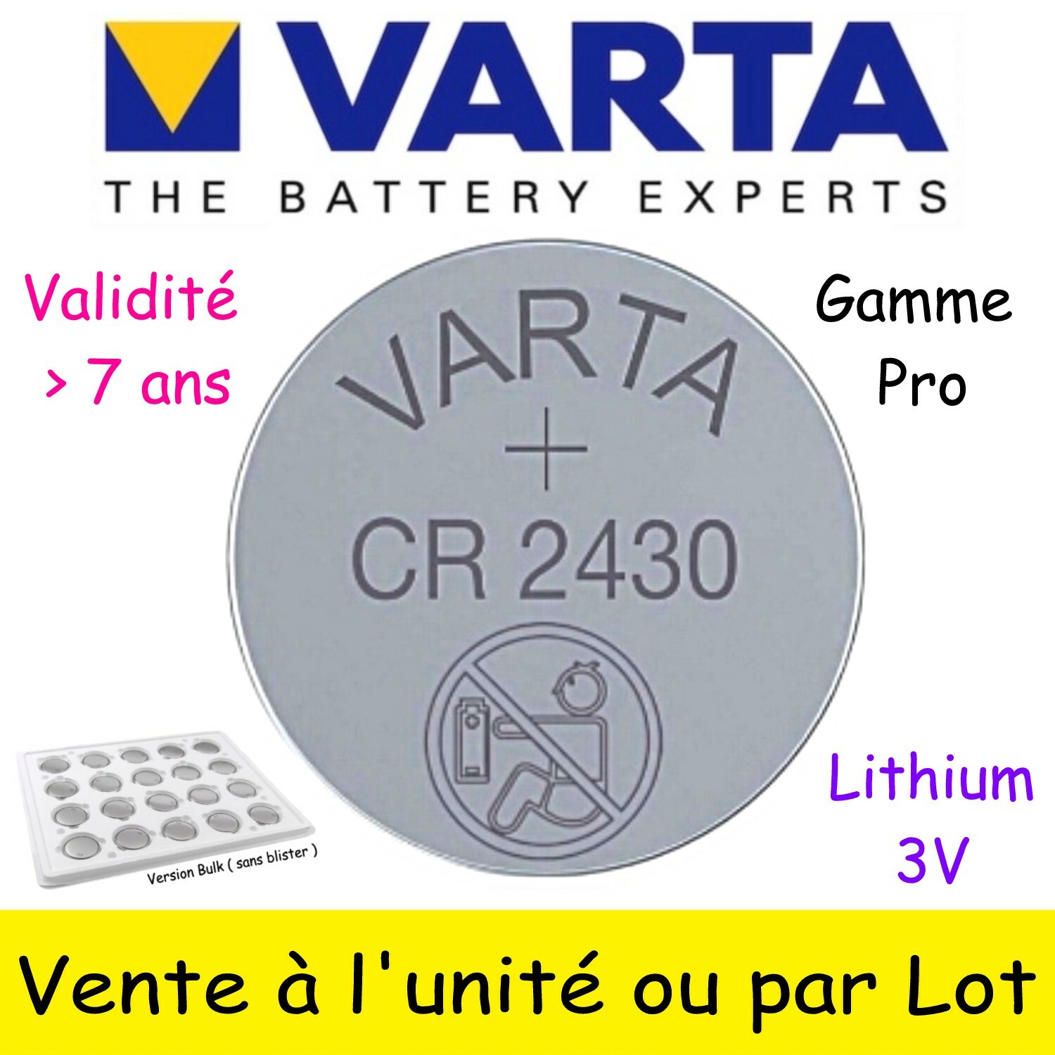 Piles bouton CR2450 VARTA Lithium 3V - Au choix par 1 2 5 10 20 30 40 50 ou 100