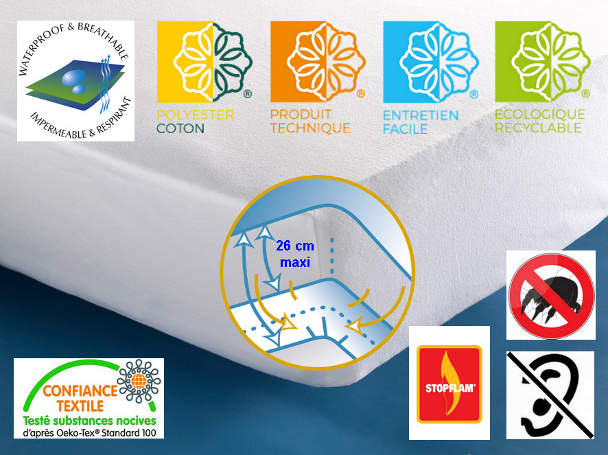 Protège-matelas alèse molleton imperméable respirant silencieux H30 qualité Pro
