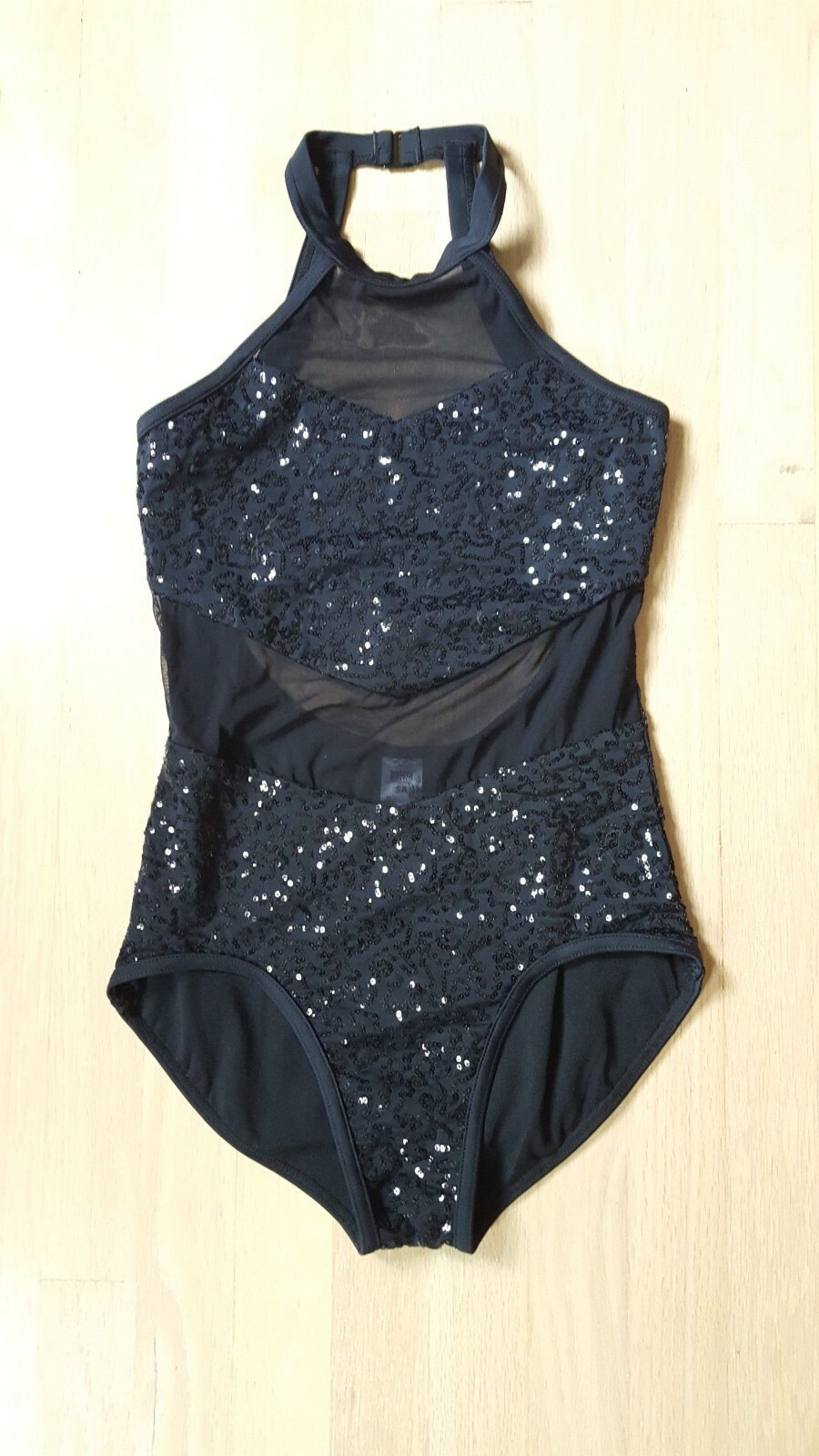 Black Sequenced and Mesh Halter Leotard with Open Back Teen Jazz Solo