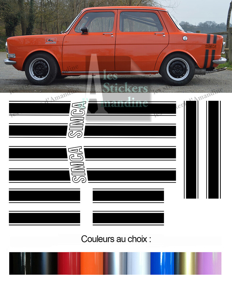 SET DE BANDES DE CAPOT STYLE RALLYE 2 POUR SIMCA 1000 STICKER AUTO BD578-2