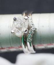 Bague de fiançailles diamant brut bleu naturel de 0,90 ct, bague en argent ha...