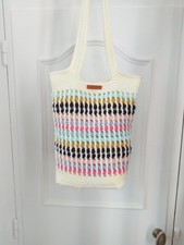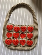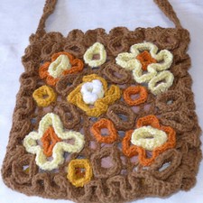 Sac au crochet vintage fait main avec poignées en bambou - sac à main tissé boho