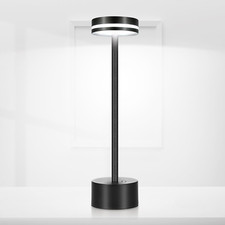 Lampe de bureau LED moderne avec commande tactile et batterie rechargeable Cette élégante lampe de bureau LED séduit par son design minimaliste et ses fonctions polyvalentes. Avec son corps fin en acier et sa finition thermolaquée, elle s'intègre harmonieusement dans tout type d'intérieur - salon, chambre ou bureau. La lampe fonctionne sur batterie et peut être facilement rechargée à l'aide du câble USB (type A vers type C) fourni. Un port USB intégré sur le côté de la base reste discrètement en arrière-plan, tandis que l'interrupteur marche/arrêt situé sur le dessous de la lampe lui confère un aspect épuré.