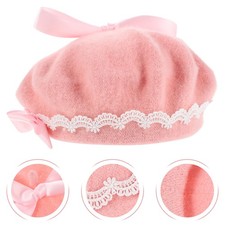 Bonnet beret femme en laine marron ecru doré avec fleurs fait main au crochet