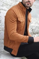 Veste de vol/bombardier en daim marron pour hommes, blouson de motard...