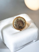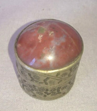 Avec 1 tête de chat sur le couvercle. Très jolie petite boîte dorée à pilules. Excellent état.