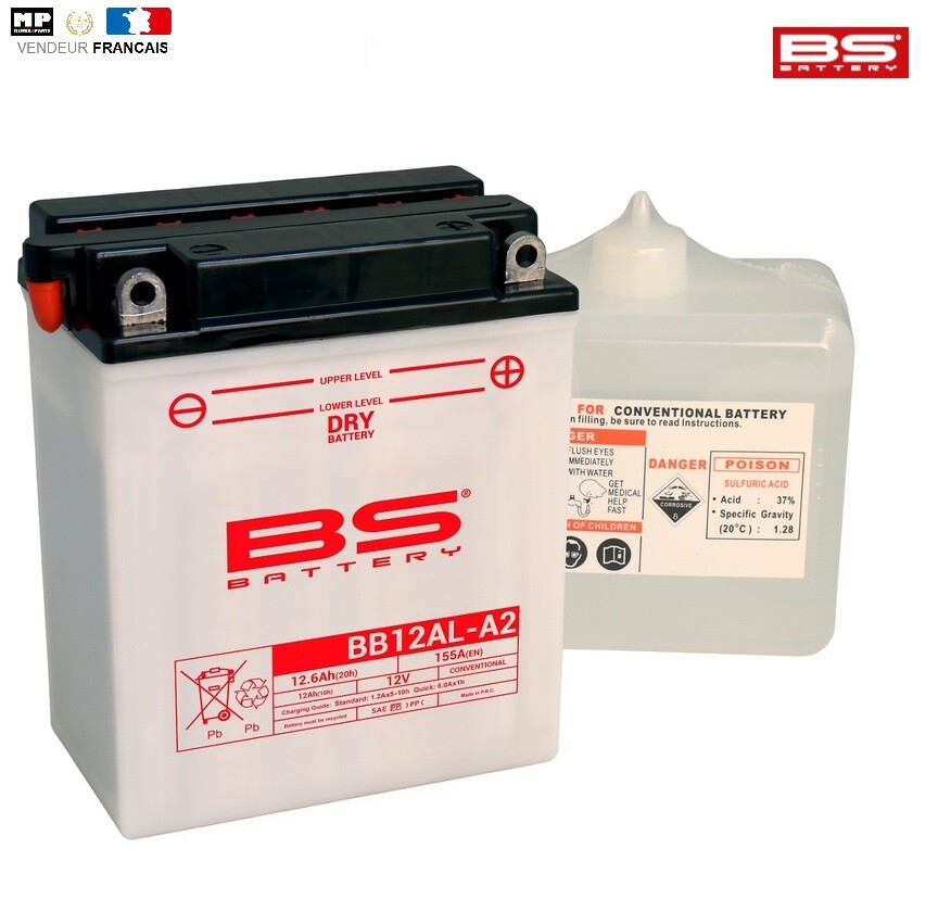 Batterie Moto Avec PACK Premium BS-BATTERY YB12AL-A2 BB12AL-A2 12V 12.6Ah