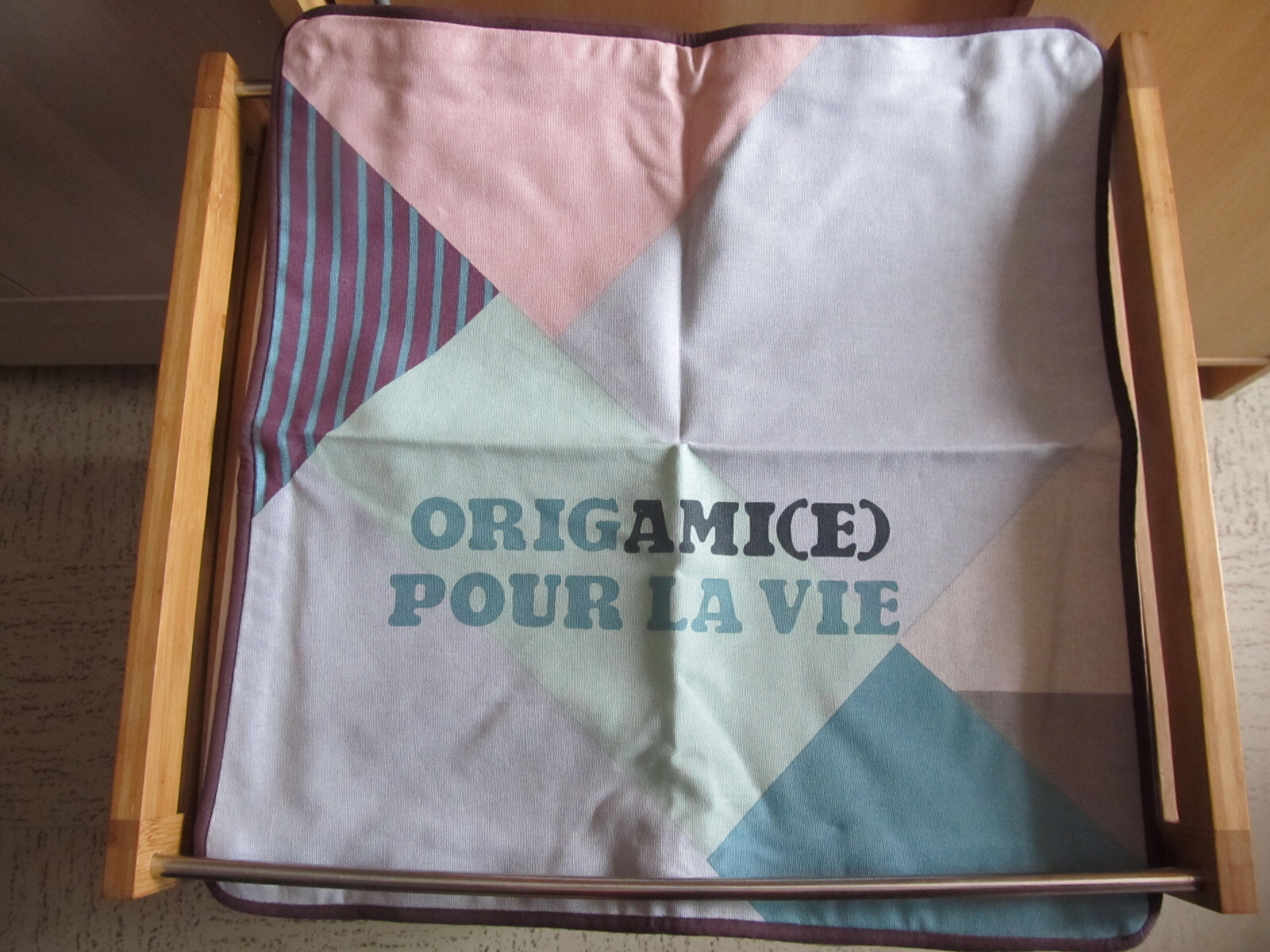 Housse de coussin amovible - Françoise Saget. lavable a 30 degrés, motif origami. Neuve, de très belle qualité en 100% coton épais. Envoi gratuit en relais près de chez vous via Mondial Relay ! de votre point relais si elle est bien proche.