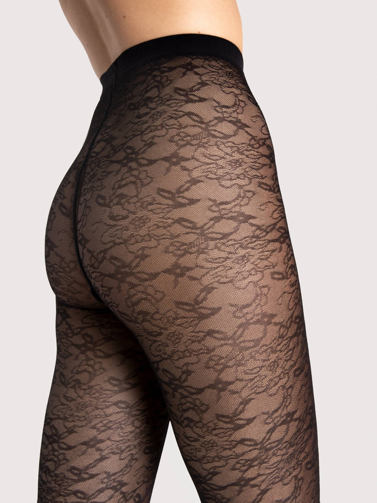 Collant fantaisie femme, modèle Ariel de la marque Fiore (Référence G6085), de fabrication Européenne de haute qualité, en très fine résille et motifs, couture plates, gousset coton pour les tailles 3 et 4, pointes invisibles et renforcées, 30 deniers.