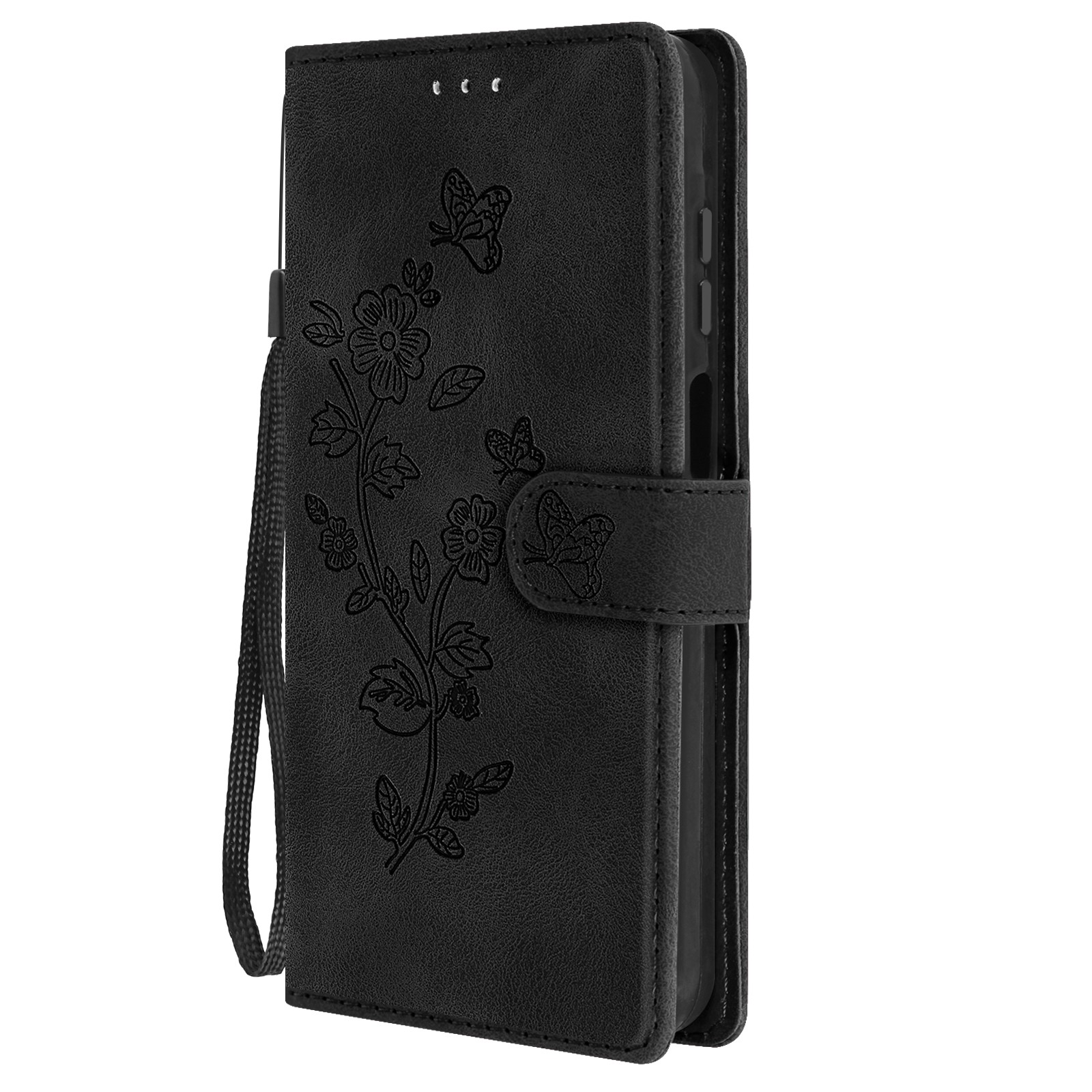 Avizar Étui pour Samsung Galaxy A15 5G Portefeuille Fleur avec Dragonne Noir