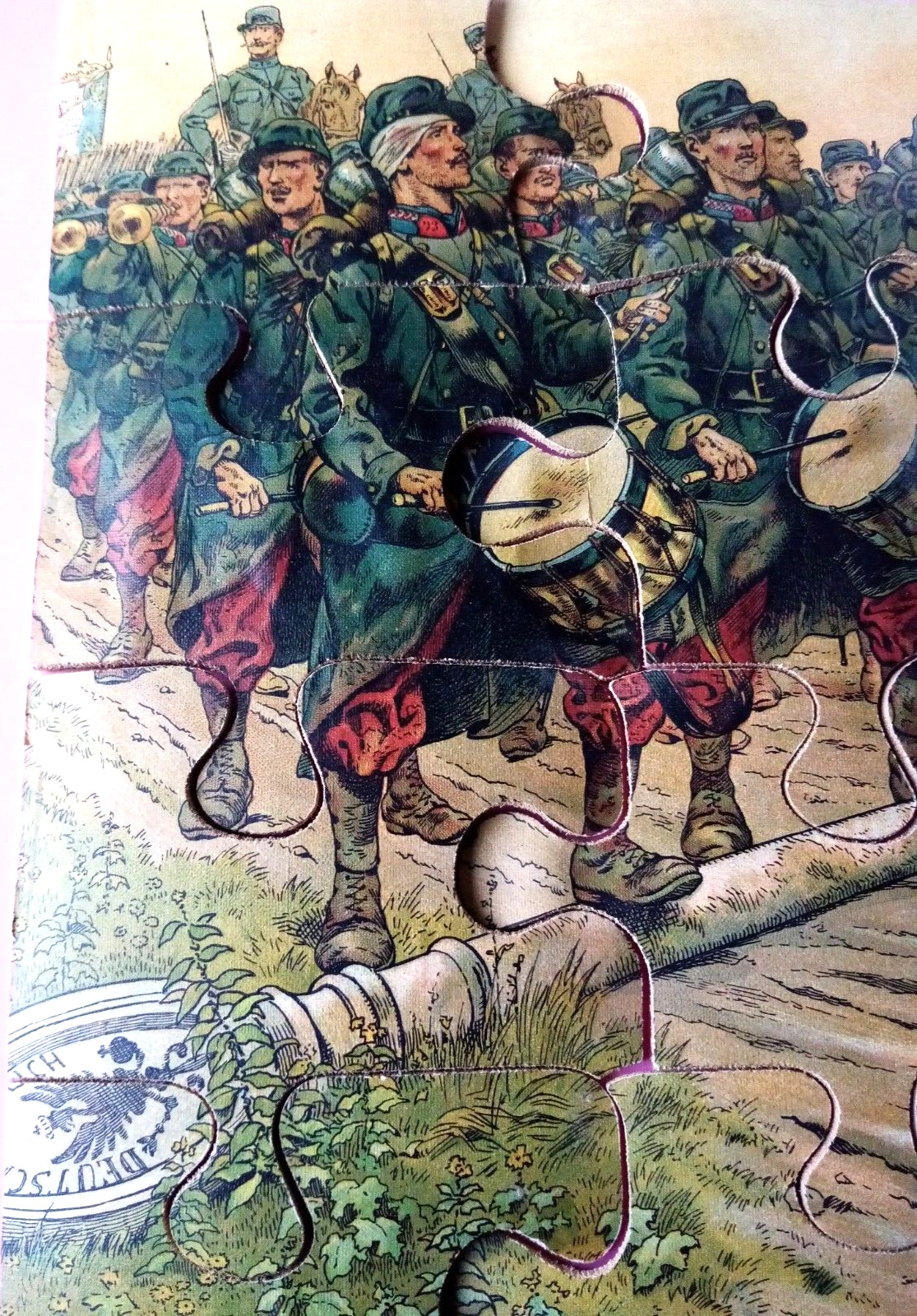 c. 1870 🧩 BOITE DE 3 PUZZLES ANCIENS EN BOIS 🧩 DONT UN MILITAIRE - MILITARIA
