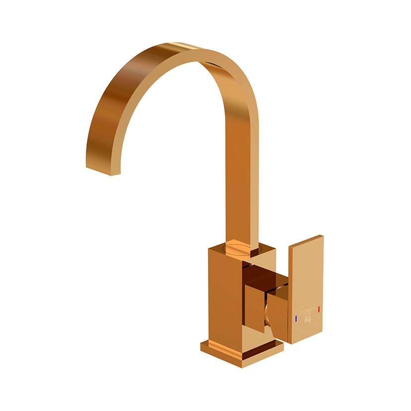 Robinet de cuisine Steinberg série 135, pivotant, avec vidange, largeur 150 mm, 1351501RG, couleur : or rose. Steinberg Série 135. bec pivotant. Garniture de vidage (1 1/4") avec barre de traction. avec tuyaux flexibles 3/8".