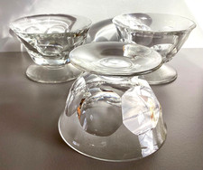 Ensemble de 3 coupes à champagne en cristal. Jambe balustre et contenant guilloché.