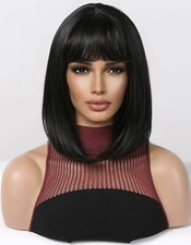 Perruque femme cheveux courts lisses gris argent fibre synthétique haute temp...