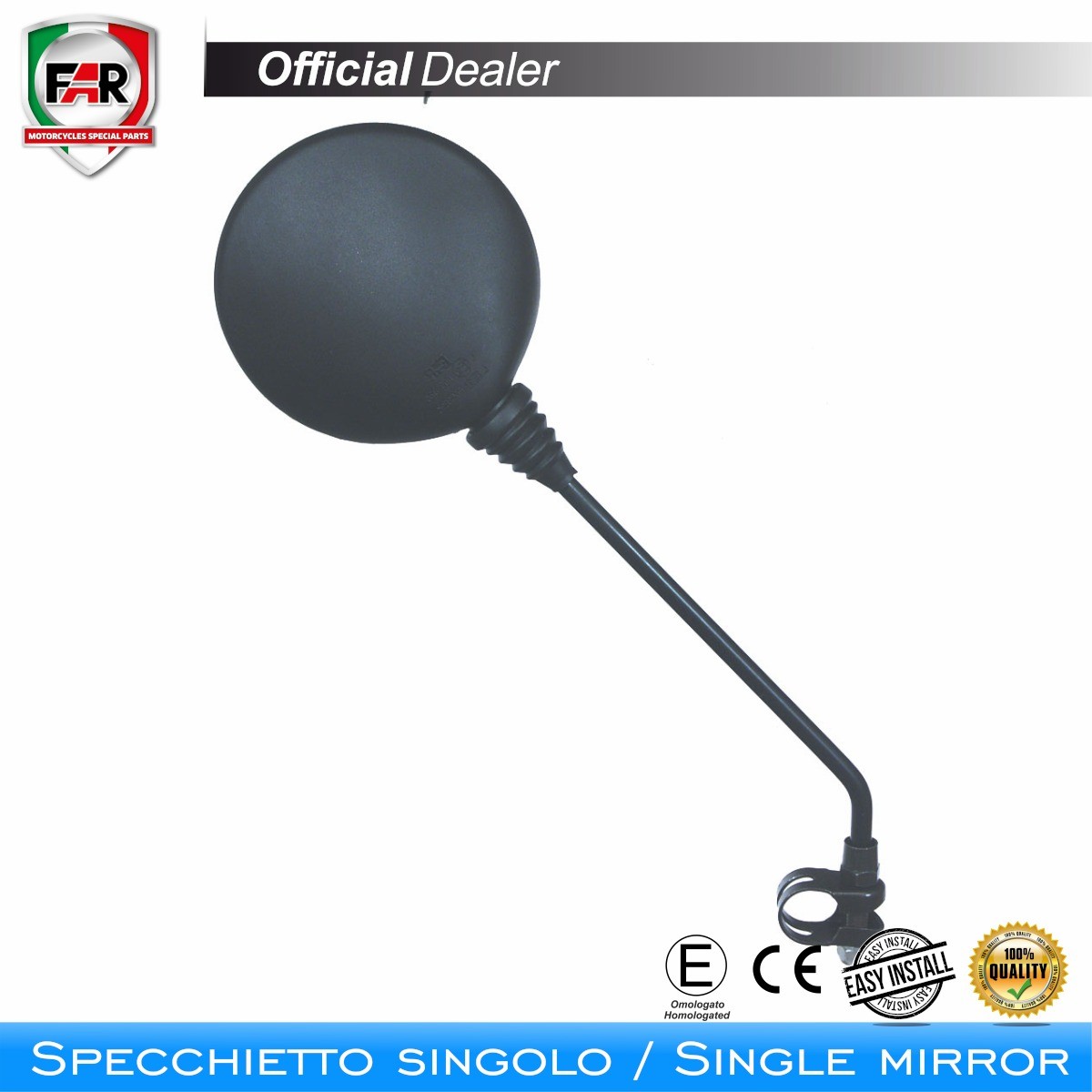 Le rétroviseur de guidon universel est l'accessoire parfait pour ceux qui cherchent à allier fonctionnalité et design. D'une esthétique élégante et discrète, ce rétroviseur noir est conçu pour équiper les cyclomoteurs et les vélos équipés d'un guidon standard, assurant une vision claire et sûre de la route. Sa polyvalence permet un montage sur le côté droit et gauche, offrant une flexibilité d'installation maximale. Fabriqué avec une tige robuste d'un diamètre de Ø 8 mm et d'une longueur de 260 mm, ce miroir est construit pour durer dans le temps. La connexion avec une pince de diamètre Ø 22 mm rend le montage rapide et facile, sans complications. De plus, étant homologué, il répond aux normes de sécurité routière, garantissant que chaque trajet soit non seulement élégant, mais aussi sûr.