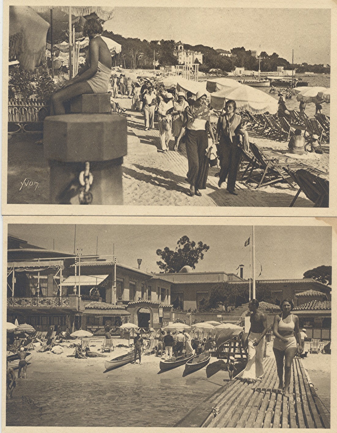 06 - Lot de 2 CPA Juan-les-Pins (Alpes-Maritimes) La Jetée et la Plage / Superbe