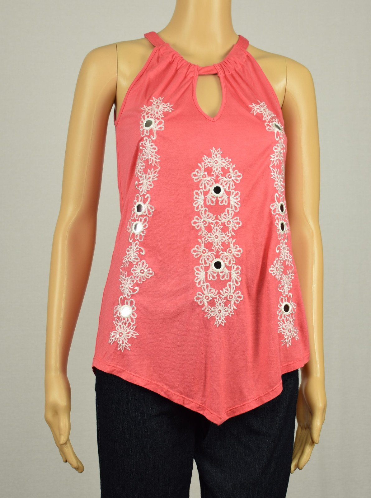 Haut à bretelles femme INC International Concepts brodé corail M L XL
