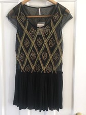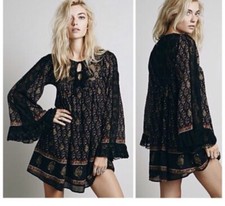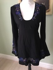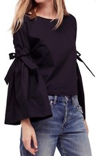 Haut tunique femme Free People noir manches cloche dos ouvert col V profond S