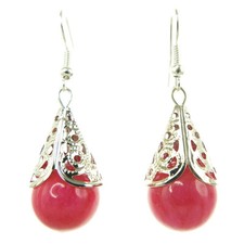 1 boule en pierre surmontée d'une rose en argent tibétain ornées de reliefs. Attache type clou avec poussoir métal. Boucles d'oreilles. Bien que la photo essaie de rendre la couleur la plus fidèle possible à la réalité, les réglages des écrans d'ordinateurs étant tous différents, il y a des légères différences de tons inévitables entre la photo vue sur votre écran et l'objet réel.