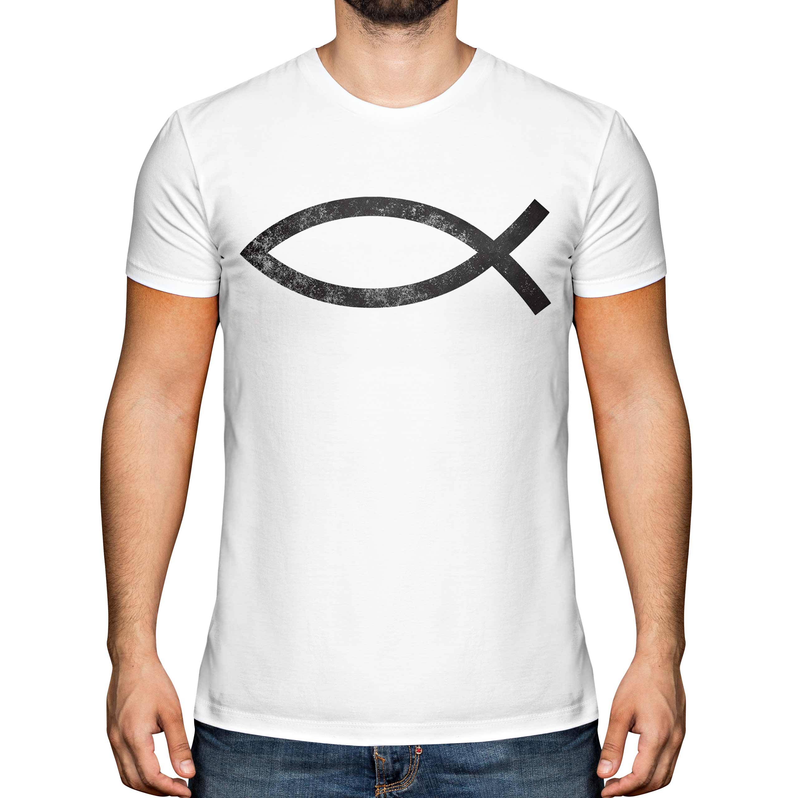 Christian Ichthys Poisson Délavé Imprimé Homme T-Shirt Vintage Style Design Top