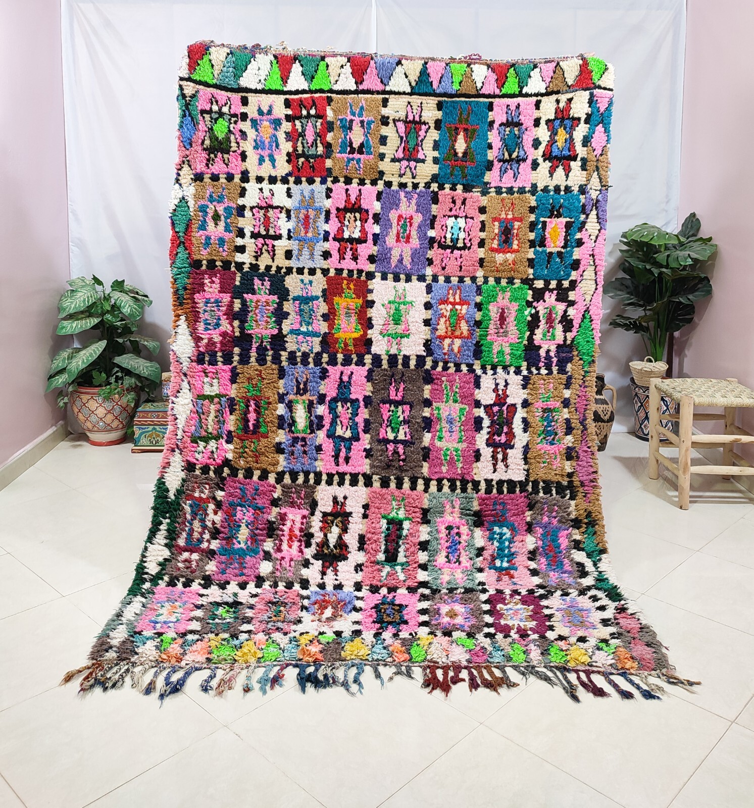 Les tapis boucherouite sont une spécificité des tribus rurales du Maroc. Le mariage entre l'ethnicité et le design n'a jamais été aussi réel qu'avec ce magnifique tapis boucherouite qui trouvera sa place dans toutes les pièces de la maison : chambre d'enfant, salon, bureau, chambre d'adulte.